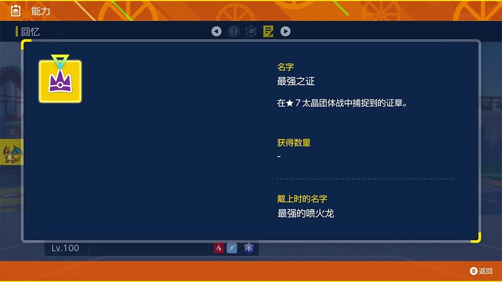 另外,在黑色结晶的太晶团体战中捉到的“最强的喷火龙”拥有“最强之证”。2段时间内出现的“最强喷火龙”拥有相同的能力和招式,1个存档只能捕捉1只。