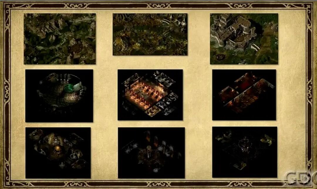 我们希望实现经典的等距视觉效果和感觉,如图所示,我们并没有完全模仿之前游戏的做法,但风格很接近,比如《博德之门2》是直接渲染,《冰风谷》加入了大量手绘。