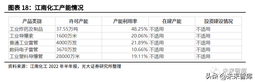 (1)民爆产品的研发、生产、销售方面:公司已形成贵州、河南、甘肃、 西藏、山东、河北、新疆等全国布局的生产基地,可为用户提供品种齐全、规 格配套的工业炸药、工业雷管、工业导爆索(管)以及根据用户特殊需求订制 的个性化民爆产品,产品广泛应用于矿山开采、水利水电、基础设施建设、城 市改造及国防建设等领域,产品销售市场覆盖全国各地。(2)工程爆破服务方面:公司拥有全国规模最大的专业爆破施工企业, 施工技术、企业规模、经济效益均跻身全国同行业领先水平,系贵州省首批科 技创新型领军企业,2013 年获批为国家级高新技术企业。公司系国内集民爆一体化经营业务,为数不多集矿山工程施工总承包一级 资质、市政公用工程总承包一级、爆破专业一级于一体的大型综合民爆服务商, 目前公司的民爆产品产销位居前列,数码电子雷管产能第一,并率先涉足国土 空间修复治理领域“山水林田湖草”综合治理的生态模式新业态。2022 年上半年,公司实现收入 27.2 亿元,归母净利润 203.85 万元。数码电子雷管产能第一,许可产能约 1.71 亿发。公司数码电子雷管在技 术、质量、产能等方面均处于全国领先地位。公司民爆产品销售在贵州省达到 全覆盖,省外涵盖云南、广西、四川、新疆、内蒙、浙江、山东、辽宁、西藏、 河南等省份,国外有越南、老挝等国家。
