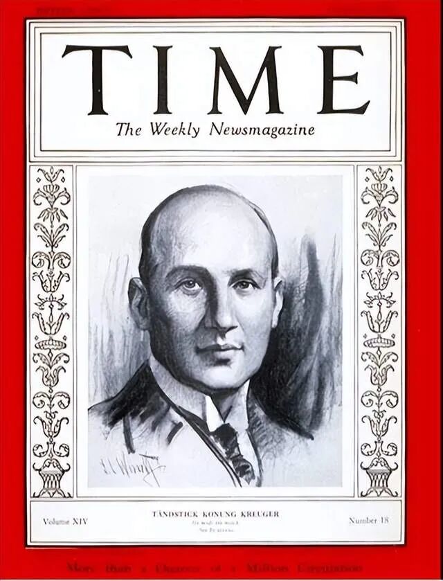 1929年10月28日,瑞典商人 Ivar Kreuger出现在《时代》杂志的封面上。