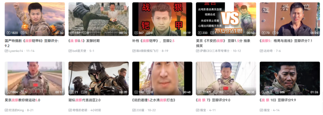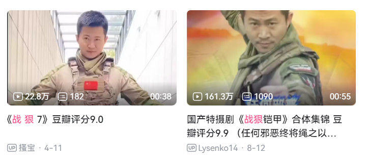 就好像人们曾经不断补档“东百往事”系列视频那样,B站上的“战狠”系列,也一直在不断更新着续作,同时每一段视频,都被贴心地配上了所谓的“豆瓣高分”。