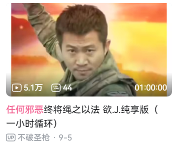 有人将“任何邪恶终将绳之以法”这句话,抽象成了B站鬼畜区新的接头暗号。只要你在评论区看到下面这样的评论,你就知道,这又是一位被“战狠”铠甲拯救过的可怜人。