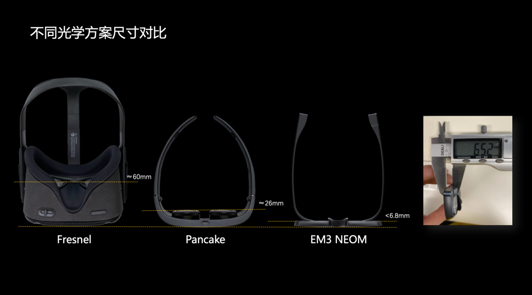 对比来看,EM3 ETHER无论在产品尺寸、显示性能还是技术成熟度方面,都更加领先。并且,想要实现如此轻薄的产品设计,EHTER的光学方案几乎是当下唯一的选择。