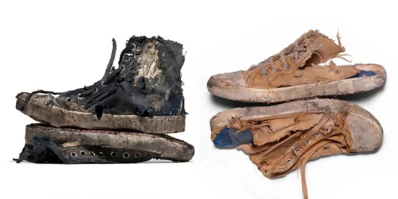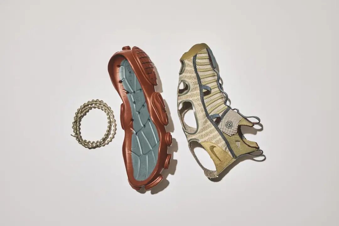 妈妈见了要打人,外婆见了要拿针,这说的是破洞牛仔裤。一种长辈无法理解的时尚,裤子破了不补,还要穿出去招摇。往面子上说这是穷到没钱买新衣服的经济状况暴露无遗,往健康上说这是不注重保暖膝盖漏风多年后出现老寒腿的重要原因。现在长辈无法理解的时尚又增加了,脏脏鞋,而且是脏到无法忍受的「脏脏鞋」。《太阳的后裔》里,男主角穿的脏脏鞋是一种时尚。看了那部剧的观众就算不喜欢这种脏脏鞋也不会太讨厌,毕竟这些鞋脏的有限,最多像你穿着它打了一场篮球赛,对抗中留下了不少鞋印的痕迹。在商场里,Balenciaga 限量 100 双的脏脏鞋绝对是你能找到最脏的鞋子,没有之一。至少从外表看上去,这是拿去回收都有人会嫌弃的样子,因为它实在是太破了。原先平整的纺织鞋面充满了毛边,鞋带看上去将断未断,塑胶圈老化严重有裂口划痕,鞋面充满了很多不知道怎么搞出来的破损。换句话说,这是一双免费送大部分人都会拒绝的鞋子。当然,Balenciaga 不是真的在卖这么脏的鞋,它只是用一种广告手法向你展现这个鞋子能脏到什么地步。这是摄影师 Leopold Duchemin 拍摄的创意广告,展现的就是你穿这双鞋 100 年后鞋子的状态,想让你知道这双 Paris 运动鞋「注定要穿一辈子」而正常在商场售卖的这双鞋看上去和普通的脏脏鞋没什么不同,白、红、黑色三色毛边处理营造出破损感,鞋舌和鞋跟有一些划痕,这都是特意做出的磨损的痕迹。但这双鞋可不便宜,愿意花钱买这双「破鞋」的人恐怕都不需要节俭到穿 100 年。售价在 496 美元(约 3000 人民币)到 625 美元(约 4400 人民币)之间的 Paris 运动鞋满足的不是那些对鞋子耐穿性有要求的粉丝,而是对时尚有追求的粉丝。当然,如果你觉得售卖的脏脏鞋实在是太普通了,你也可以买 Balenciaga 广告中破损严重的「仿百年运动鞋」。穿肯定是不可能穿的了,但是 1800 美元(近 12700 人民币)的限量版球鞋价格说不定也有社交名片价值和展览作用。如果说Balenciaga只是广告出格了一点,本身售卖的鞋子还是很日常的话,Nike最新的ISPA运动鞋是真的很「丑」且很像从垃圾堆里捡回来的。和普通的脏脏鞋一样,ISPA Mindbody 也有做旧感,就是这个做旧的程度太高了些。如同在充满绿藻的水塘里泡了半个月后被捞起来晒干一样,甚至鞋面的图案都不是一致的,就像不规则的污水泼在了鞋面上,留下了永久的污渍。这甚至都不是做旧感了,你会怀疑这双鞋就是旧的。它就像用垃圾堆里找来的材料做成,再用绳子把这些材料组合起来。用脏脏鞋来形容它都有些夸张,更准确的说法应该是「垃圾鞋」。更有甚者,说这像上世纪登山者被埋在冰川下的鞋子,现在耐克把它们挖出来了。这是耐克 ISPA 系列的新鞋履,和我们看到的运动鞋相比它很不一样。ISPA 是什么?是捡破烂,是即兴创作,是一种适应探索,是品牌对运动鞋的重新思考。用耐克的话说,「ISPA 是一套设计原则,是耐克所有设计中实验性表达的巅峰。最终的产品展现出了一种乐观的设计力量,满足了穿着者不会向外界透露的需求。」ISPA 其实就是耐克的探索项目,在这过程中设计师会努力颠覆既有的制作流程。但最重要的依旧是捡破烂(SCAVENGE),它的意思是 search for and collect (anything usable) from discarded waste,简单来说就是变废为宝。就像从剩饭中寻找美食一样,鱼头和内脏这种大部分人无法接受的食材在懂行的厨师手上也能成为珍馐。嗅觉敏锐的设计师们则可以从无尽的垃圾中,找到最适合出现在运动鞋上的材料。耐克高级设计总监 Darryl Matthew 就表示:「在 NIKE ISPA 的开发过程之中,我们挑战的不只是生产端的技术,也是对于品牌既有流程的颠覆。」ISPA 曾被外界看作试验性的项目,用创新抬高业内天花板也是耐克的目标之一。在这种情况下,设计能力、可持续的环境友好和前瞻性更重要,从那些没有拿来做过鞋子的材料中获取原料更重要,而用户能不能接受反倒能向后靠一些。燃料鞋创新设计主管 Darryl Matthews 就表示:我们从未打算直接针对消费者。我们认为,在流程开始时就以消费者为目标,这会阻止我们超越预想的外观。因此,我们从一系列问题开始,并在哲学构架内不断发展了这种方法。