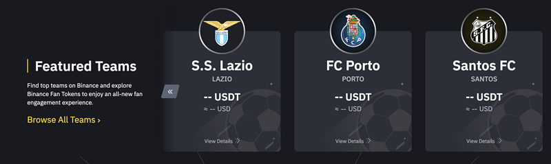 除了专为粉丝代币提供服务的 Chiliz 之外,币安与世界顶级球队也有紧密的合作。早在 2021 年币安就推出了粉丝代币平台,并上线众多粉丝代币。持有粉丝代币的人可以参与一系列球队活动,例如游戏、专属奖励、球星亲笔签名的周边商品,以及专享品牌体验等。