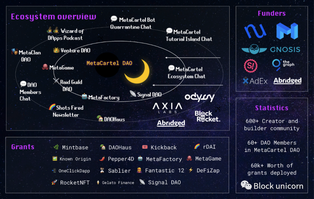 根据 2020 年第一季度的 Metacartel 生态系统地图