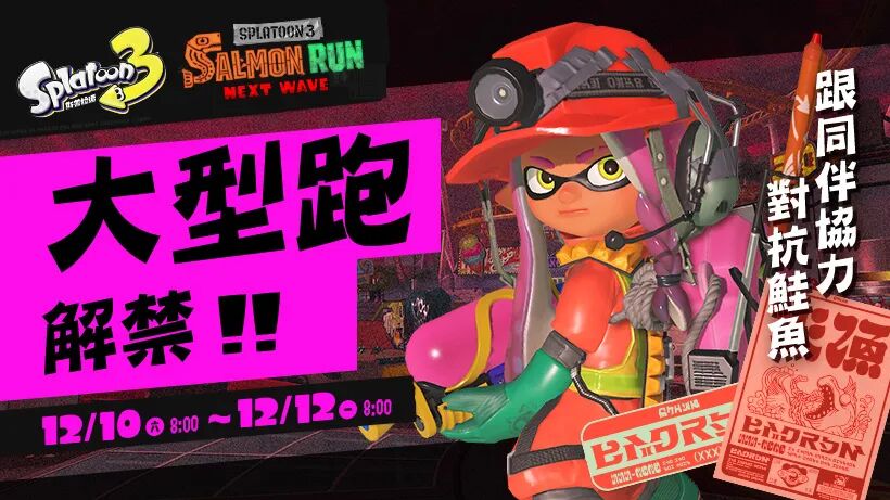 港任公开《斯普拉遁3》大型跑相关资讯。首次“大型跑”将于12月10日早8:00~12日早8:00在醋饭海洋世界发生。