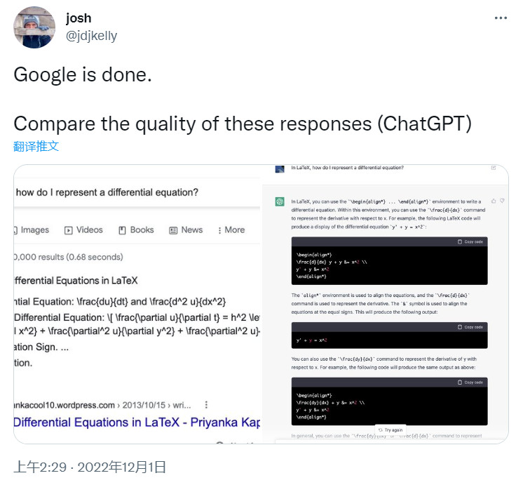 其次,目前用ChatGPT进行编程,也已经是一件相当常见的事情。它不光可以直接根据用户的需求,生成一整套完整的代码,而且附带详细的说明。经过网友们的测试,似乎用它来修BUG,也是可行的。
