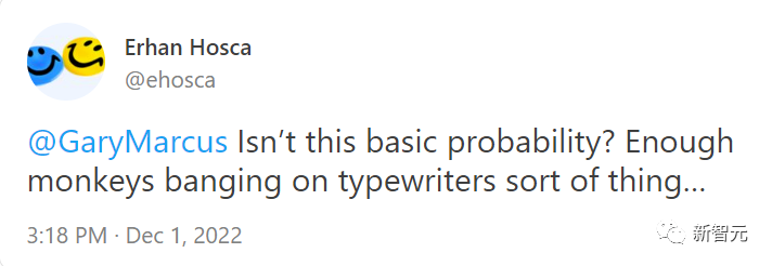 对于ChatGPT时而聪明时而笨拙的情况,有网友给出了精辟的回答:「这就是概率的问题。让猴子敲打字机,只要数量够多,总有能给出正确的答案的情况。」