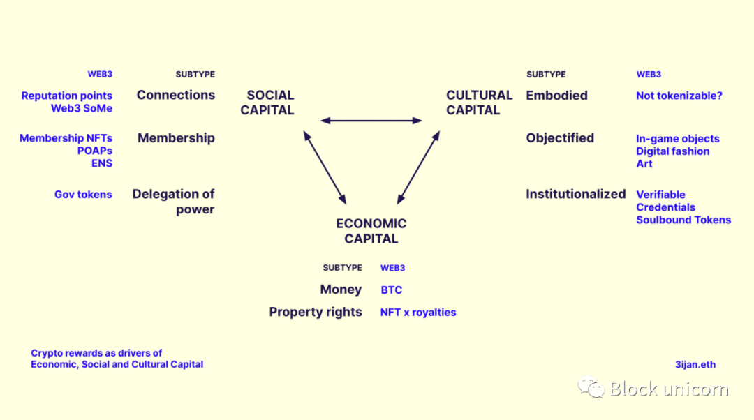 让我们来看看Web3中的社会资本。布尔迪厄从关系、成员身份和权力代理的角度解释了社会资本。