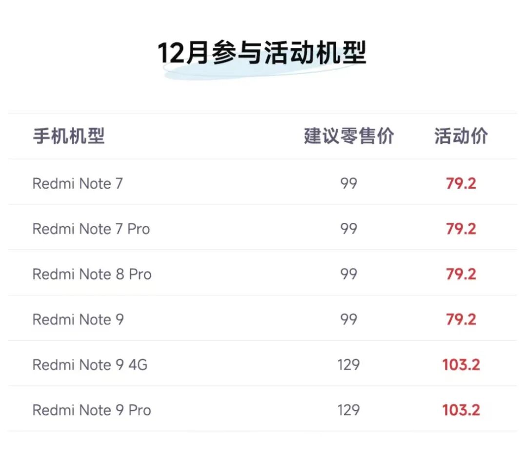 今日,小米集团合伙人,中国区、国际部总裁,Redmi品牌总经理卢伟冰发文提前剧透露了Redmi K60系列消息,其表示Redmi K60宇宙新杯型为K60E,将首批搭载天玑8200旗舰芯片,号称:“轻享高性能,超越想象的强大配置”。据悉,天玑8200芯片采用台积电4nm制程工艺,采用8核 CPU 架构,4个Cortex-A78大核+4个Cortex-A55小核,其中1颗A78大核主频可达3.1GHz。同时集成了Mali-G610六核 GPU,支持四通道LPDDR5内存和UFS 3.1闪存。另据数码博主@数码闲聊站 的爆料,Redmi K60E机型将配备国产护眼柔性直屏,采用居中打孔设计,内置 5500mAh 电池,后置主摄测试的是4800万像素摄像头,支持OIS光学防抖。此外,有爆料称Redmi K60系列首发将推出三款机型,除了搭载天玑8200的Redmi K60E,还有搭载骁龙8+的Redmi K60以及搭载第二代骁龙8的Redmi K60 Pro。据@数码闲聊站 透露,两款采用骁龙平台的高配机型都将配备新款的 2K 柔性直屏,具有护眼调光方案,并且高配版后置主摄为5000万像素。电量快充方面,该博主表示,Redmi K60系列将提供 67W 有线 + 30W 无线以及 120W 快充 + 30W 无线的快充方案。发布时间方面,结合目前的爆料消息,Redmi K60 系列手机最快有望在明年1月发布。除了Redmi K60系列的消息,小米服务官方在今日公布了新一批电池换新服务机型,包括Redmi Note 7、Redmi Note 7 Pro、Redmi Note 8 Pro、Redmi Note 9、Redmi Note 9 4G、Redmi Note 9 Pro六款机型,活动时间为12月8日10:00至12月14日24:00,换新价格为79.2元起。需要注意的是,服务周活动价为使用 8 折优惠券后的价格,用户需先兑换优惠券。
