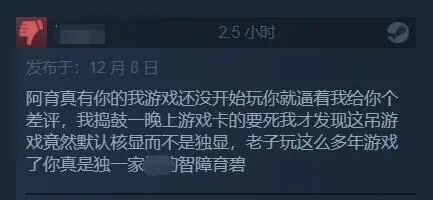 2022:真香! 阿育真有你的我游戏还没开始玩你就逼着我给你个差评,我捣鼓一晚上游戏卡的要死我才发现这吊游戏竟然默认核显而不是独显,老子玩这么多年游戏了你真是独一家XX智障育碧 (外国友人也来凑热闹)很棒的游戏,开放式的游戏世界,画面精美,令人沉迷 公式化罐头,说什么离开steam是为了玩家,然后去自家的垃圾平台上疯狂涨价,卖了几年又不要逼脸地夹着尾巴回steam,一个单机更新两年都没更新完,还多买一个版本,另外官方还确认目前没有加入steam成就系统的打算,育碧和育孝子赶紧死-END-