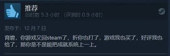 《刺客信条:英灵殿》已于昨日正式回归Steam平台,目前该游戏在Steam平台已经有了484篇用户评测,总评价为「多半好评」,好评率为70%。 值得一提的是,《刺客信条:英灵殿》首发还有促销优惠,国区标准版立减67%,仅需98.34元,完整版立减65%,只需要244.3元。此外还有豪华版和诸神黄昏版可选(也都在打折)。点击这里进入Steam游戏页面,版本选购建议请点击这里。 玩家评价方面,好评主要集中在《刺客信条:英灵殿》终于回归Steam了,还打折;游戏一如既往的开放和好玩;游戏画面很不错等等。差评主要集中在:游戏没有成就系统;育碧回归Steam吃相太难看;游戏默认核显;公式化罐头等等。好了,下面就让我们一起来看看玩家的好评与差评吧! 育碧,你游戏又回steam了,折你也打了,游戏我也买了,好评我也给了,那你是不是能把成就系统上一上。 成就呢?成就呢?成就呢?成就呢?成就呢?成就呢?成就呢?成就呢?成就呢?成就呢?成就呢?成就呢?成就呢?成就呢?成就呢? 2011年战地放弃steam