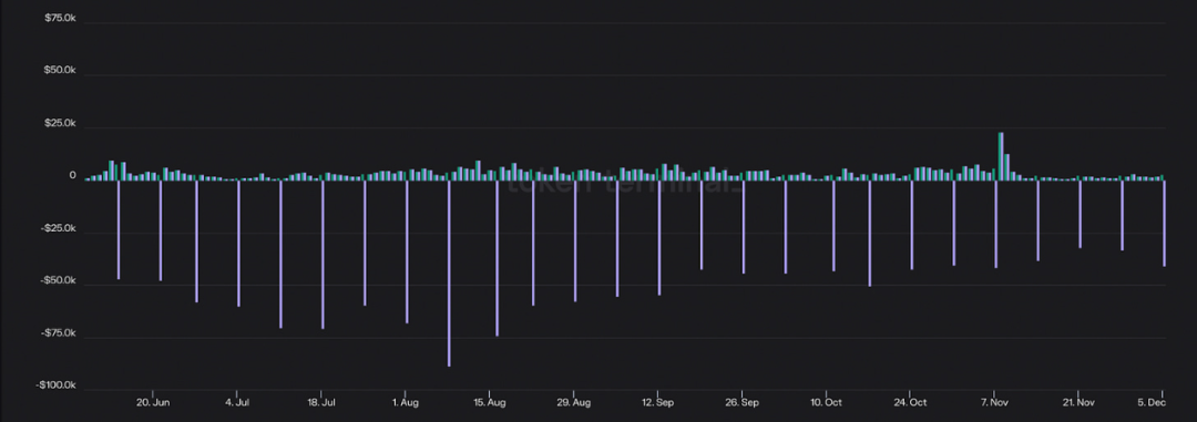 总的来说,GMX 的交易量为 446 亿美元美元,收入为 1770 万美元,在此期间亏损 2430 万美元,利润率为 -137%。