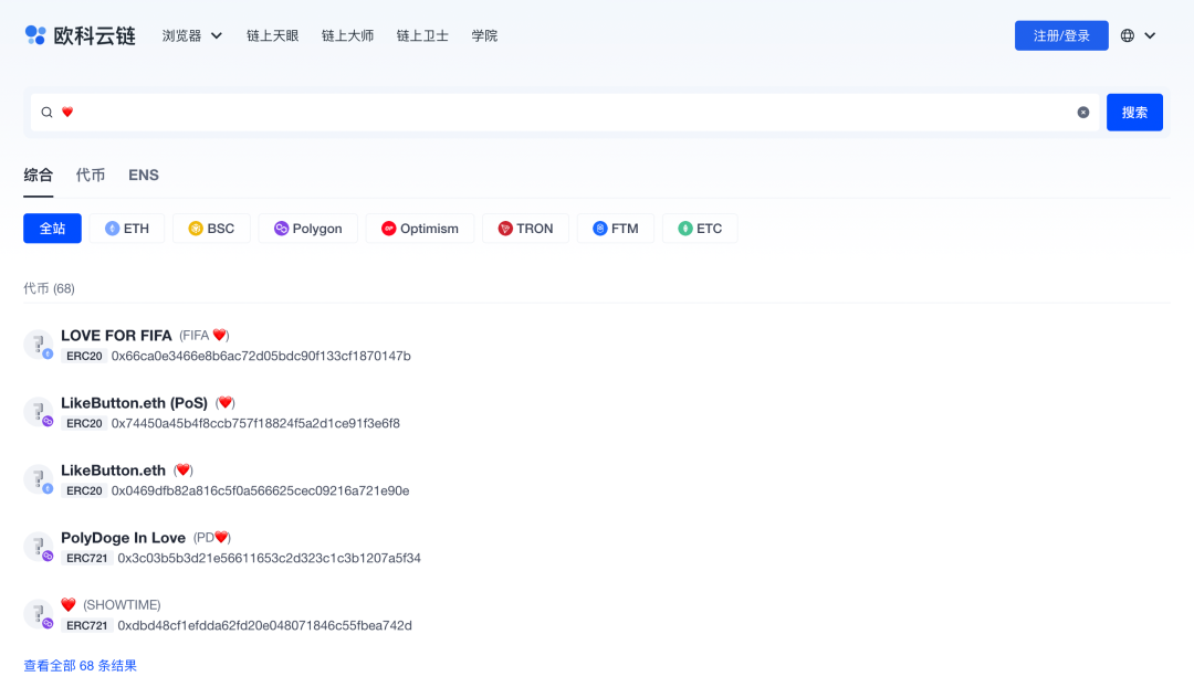 近日,欧科云链OKLink多链浏览器推出“聚合搜索”功能,覆盖BTC、ETH、OKC等13条公链。