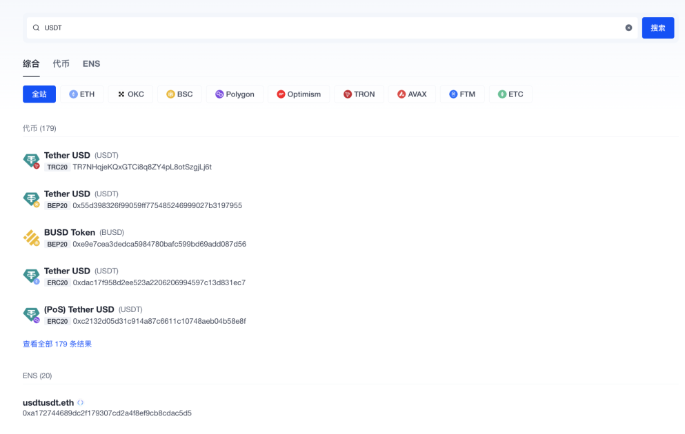 伴随「OKLink聚合搜索」的上线 ,Web3世界搜索的难题终被解决。首期支持的13条主流公链,满足绝大多数人日常搜索需求,仅需一个地址、一个项目名、一个ENS,用户就可以查看支持链上的所有相关信息。(首期还支持搜索“特殊符号”)