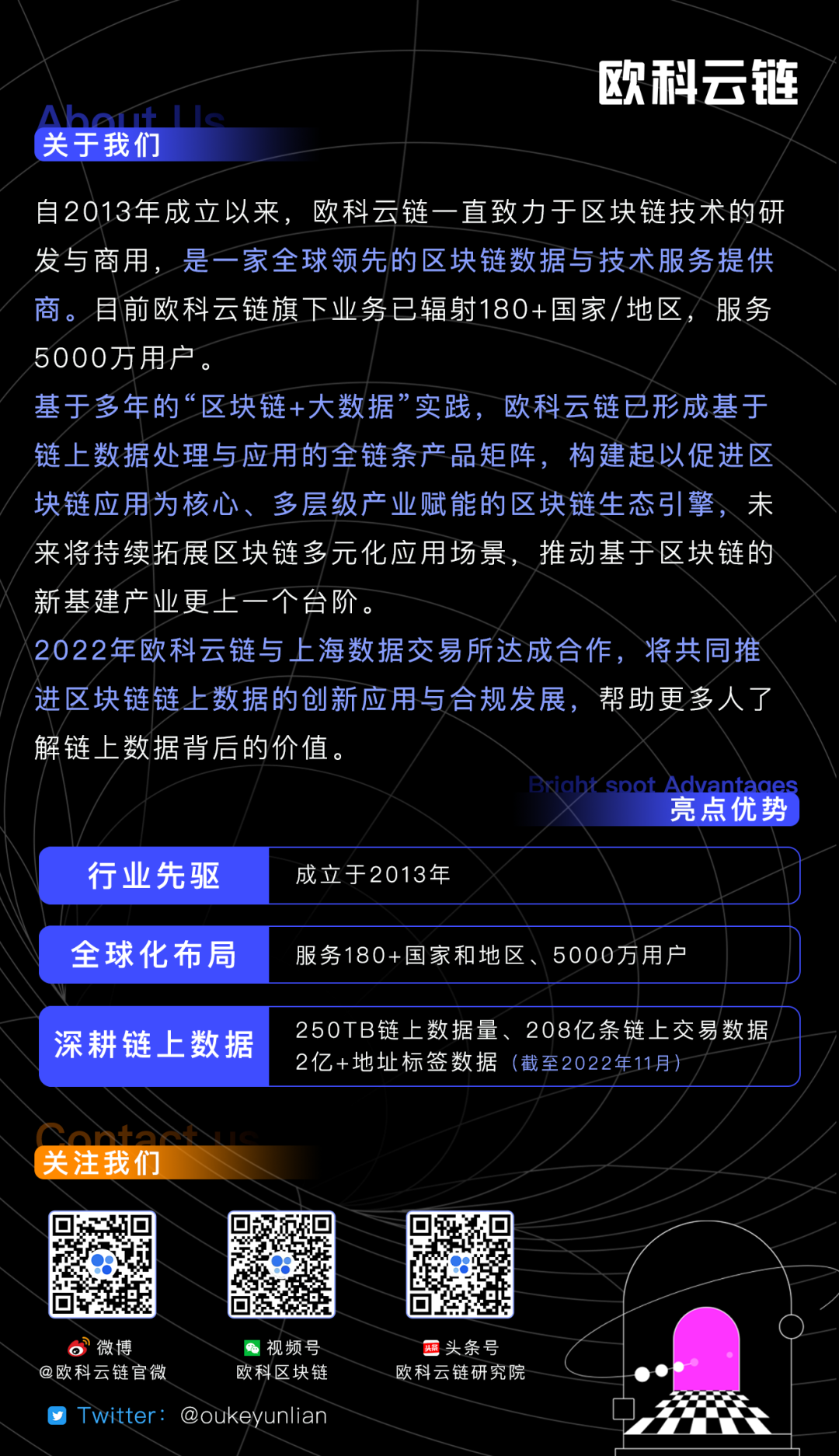 目前欧科云链在赋能产业的同时,正在不断尝试对外开放数据能力,通过鼓励UGC和Open API接口等方式,吸引更多伙伴参与和投身于链上数据赛道。