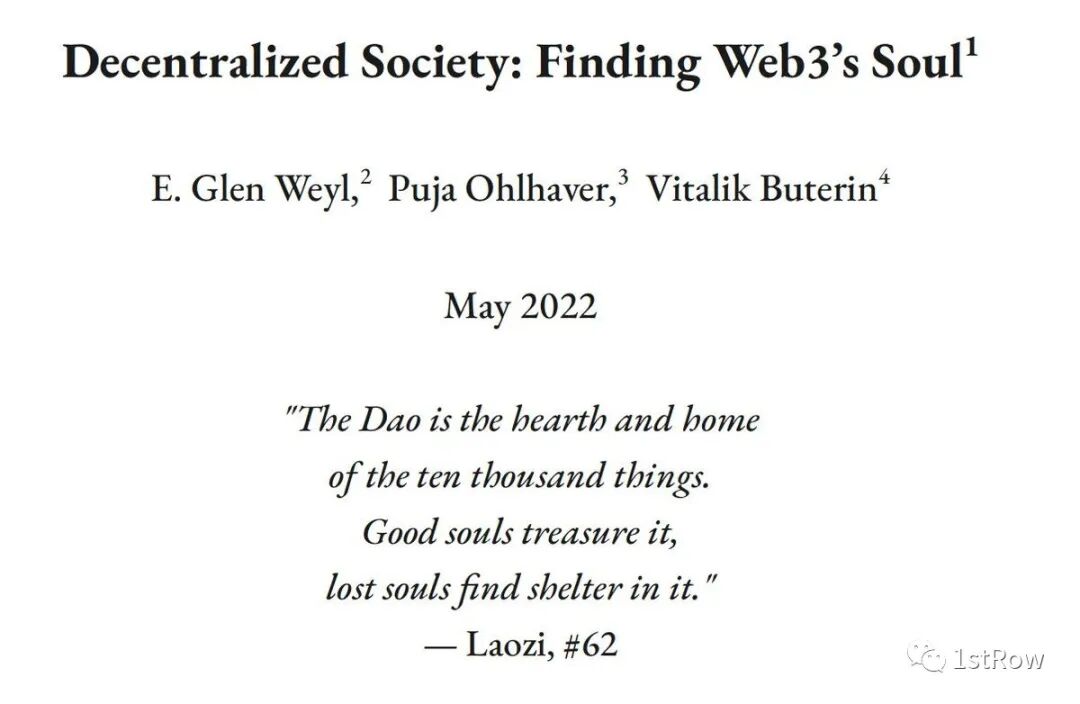 V神在5月合著的这篇论文《去中心化社会,寻找web3的灵魂》中开篇即引用了老子《道德经》的第62章:道者,万物之奥,善人之宝,不善人之所保。