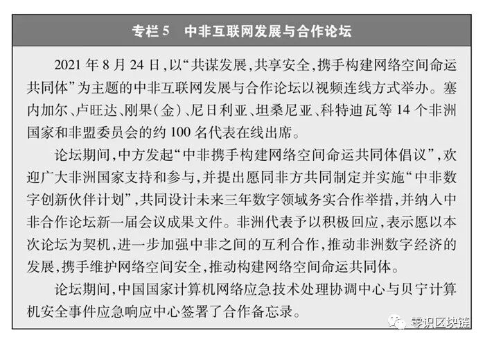 在白皮书中,重点介绍了中国不断深化网络空间国际交流合作,拓展数字经济合作,共同维护网络空间安全,积极参与全球互联网治理体系改革和建设,促进互联网普惠包容发展,与国际社会携手推动构建网络空间命运共同体。此外,白皮书对数字经济、数字产业化发展和产业数字化转型等内容做了深刻阐述。