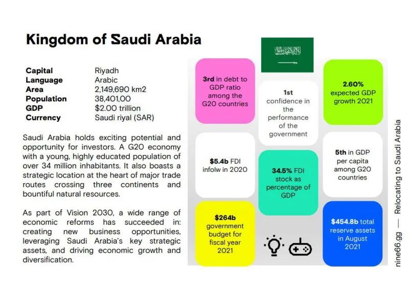 在这一理念指导下,Savvy Gaming Group旗下游戏子公司nine66近期发布了一份外国公司投资迁址指南,向外国公司介绍在沙国进行投资所需了解的背景知识。