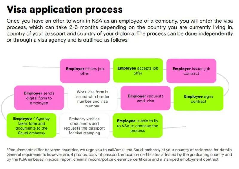 一旦获得了在沙特工作的offer,外国员工便可申请沙特阿拉伯的签证,根据所在国和学位所在国的不同通常需要2-3个月的时间进行处理。这一流程可以自行申请或通过签证中介办理。