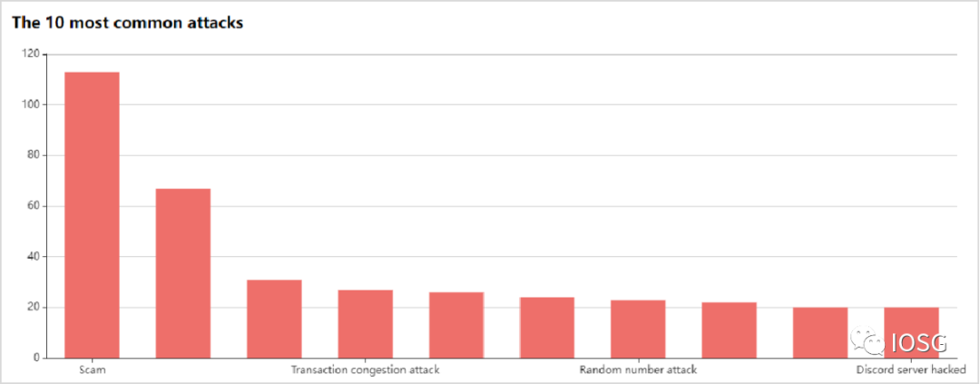 目前10种最常见的区块链网络安全攻击里Scam出现频率最高,且给用户直接造成资产损失最高。根据Peckshield的数据,在2021年crypto因为各类scams造成的链上经济损失达120亿美金,比黑客直接攻击造成的损失要高6.7倍。