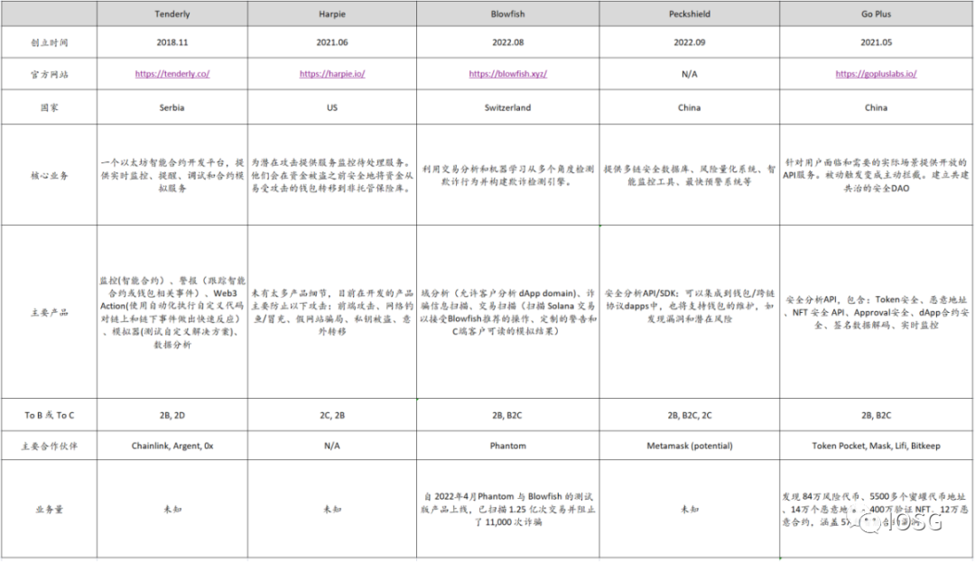 通过我们和最近行业内从业人员的交流,发现不同的Monitor服务定位其实也各有不同,比如GoPlus更加注重提供数据API服务给项目方甚至是一些注重前端的防火墙;Harpie、Blowfish更注重提供前端服务,当用户执行一个交易行为、或者完成一次授权之前模拟这个交易以发现问题阻止用户有安全风险的交易;Tenderly则更注重开发者的需求,为智能合约开发者提供运行监测等服务。当然目前这个领域还比较新,尽管像Opensea这样的大型交易平台已经和一些项目进行实质的商业合作,但是我们认为未来商业化的路径还是不太明晰同时会遇到的同业竞争会不小(因为相较于代码审计技术上的门槛会低一些)。
