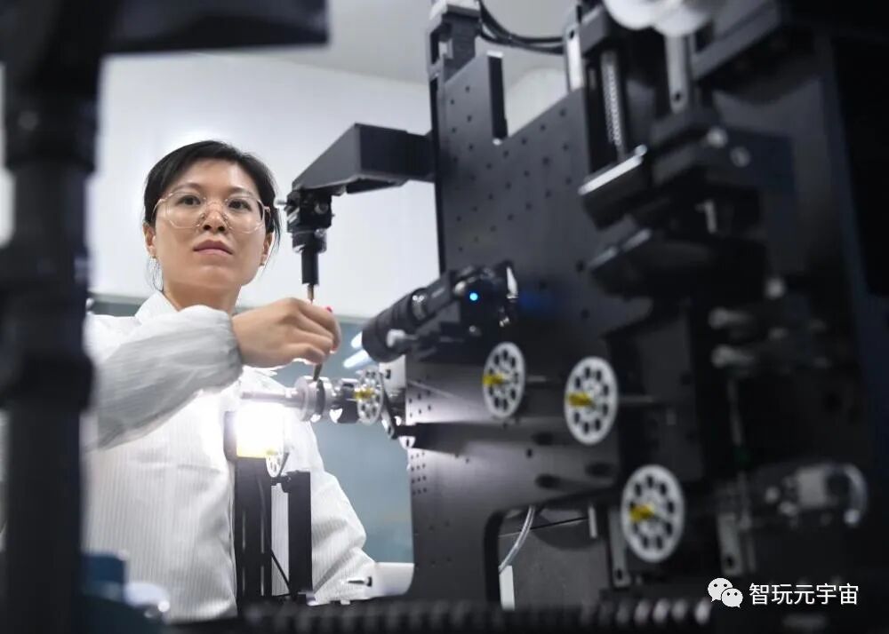 ▲陕西中科启航科技有限公司的研发人员在实验室进行光纤绕环操作/图源新华社