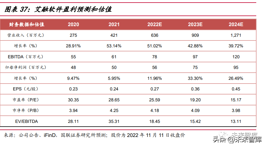 提供深度互联网整体解决方案。公司成立于 2009 年,是一家向以金融机构为主 的大型关键行业客户提供深度互联网整体解决方案的计算机科技公司,主要从事金融 机构互联网金融领域的金融 IT 软件产品技术开发和技术服务。2022 年前三季度,公 司实现营业收入 4.09 亿元,同比增长 42.62%;归母净利润 0.32 亿元,同比增长 0.52%。服务金融行业知名客户,拓展汽车行业。公司服务的知名客户包括工商银行、建 设银行、交通银行等 3 家大型商业银行;中信银行、民生银行、浦发银行等 8 家全 国性股份制商业银行;上海银行、北京银行等 8 家城市商业银行;上海农商行、北京 农商行、广州农商行、重庆农商行等农村商业银行。2022 年上半年,公司积极新拓展 了汽车软件行业客户——上海汽车集团股份有限公司零束软件分公司,向其提供汽车 软件技术 开发服务。汽车软件行业客户的拓展,使公司的服务领域拓展至汽车行业, 将进一步增强公司的竞争力。