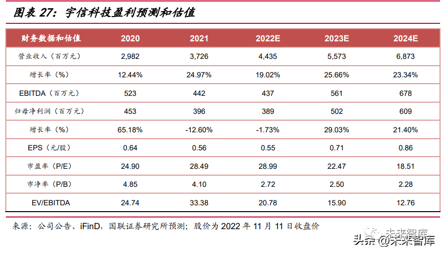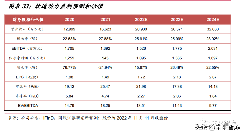 中国领先的软件与信息技术服务商。公司成立于 2005 年,主营业务是为通讯设 备、互联网服务、金融科技、高科技与制造等多个行业客户提供端到端的以咨询和解 决方案、数字技术为主的数字化创新业务服务、通用技术服务和数字化运营服务。2022 年前三季度,公司实现营业收入 141.85 亿元,同比增长 18.46%;归母净利润 6.72 亿 元,同比下降 6.05%。推出泛金融领域子品牌。公司推出了面向泛金融领域的子品牌——软通金科,可 提供核心业务类、渠道业务类、数据与监管类、平台工具类、营销触达类等全场景支 持能力。2022 年上半年,公司对金融科技行业客户实现营业收入 16.69 亿元,占营 业收入的比例为 17.98%,同比增长 48.74%;成功中标多家银行“云运营管理服务能 力迭代优化开发服务”类项目、“数据分析与建模人力资源池”类项目等;成功开拓 省级农村商业银行、农村信用社等新客户;在 赛迪“2021 年度银行 IT 解决方案排 名”中排名提升至第 5 位。