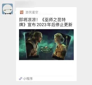 就在这时,根本没加入群语音,也不知道我们在聊什么的Marvin老师突然现身,还顺带着转发了一条新闻“《巫师之昆特牌宣布2023年后停止更新》”。