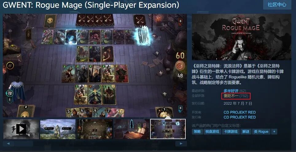 再加上,国内代理商盖娅互娱并不是大公司,CDPR中国也没有额外的精力投入更多宣发成本(全都用在2077上了),此时的“昆特牌”就这样半死不活地运营着。