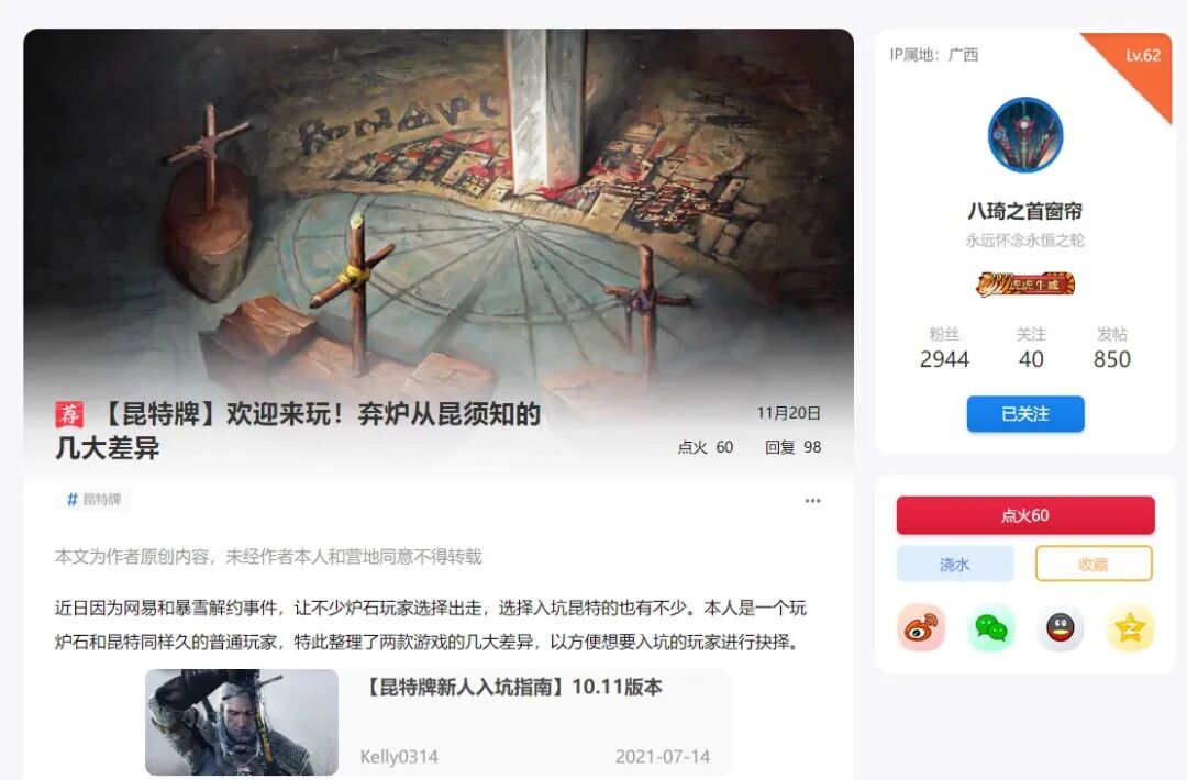 此时此刻,看着不久前“营地昆区”更新的“欢迎炉区玩家入坑昆特”帖。