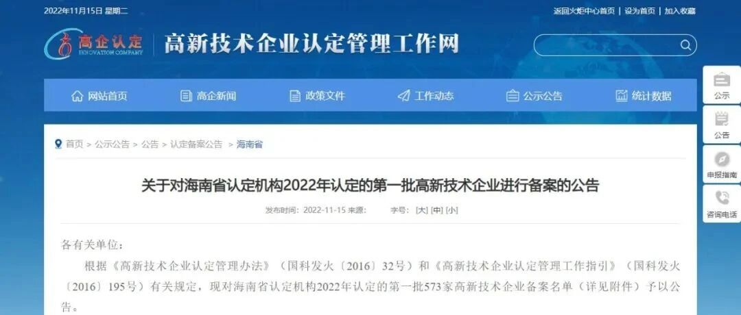 11月15日,根据《高新技术企业认定管理办法》(国科发火〔2016〕32号)和《高新技术企业认定管理工作指引》(国科发火〔2016〕195号)有关规定,全国高新技术企业认定管理工作领导小组办公室对海南省认定机构2022年认定的第一批高新技术企业备案名单予以公告。火链科技经过层层筛选和严格审核,正式通过认定,成为国家级高新技术企业。高新技术企业认定是国家大力倡导实施知识产权、加快推动企业自主创新、加快高新技术产业发展的重大发展战略,是反映一个地区科技创新、产业发展和创新环境的重要标志。高新技术企业认定也是对企业在核心自主知识产权、科技成果转化能力、研究开发的组织管理水平、成长性指标和人才结构的综合评估和认定,需要经过层层筛选和严格审核。火链科技此次获得国家级高新技术企业认定,是国家权威机构对火链科技在区块链领域创新研发和突出贡献的肯定,是对火链科技自主知识产权、技术创新能力等各方面综合实力的高度认可。
