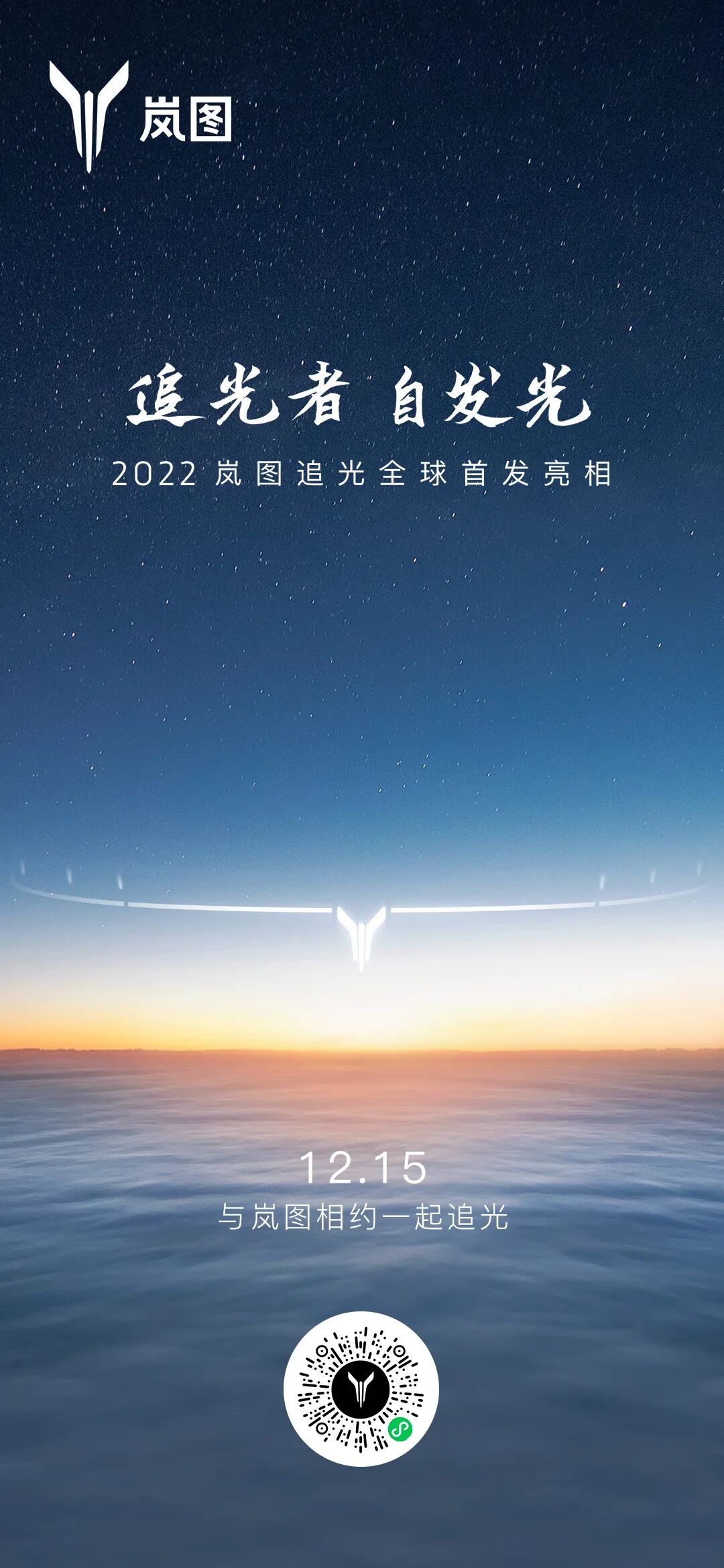 近日,岚图汽车官方宣布,岚图追光将于 12 月 15 日全球首发亮相。