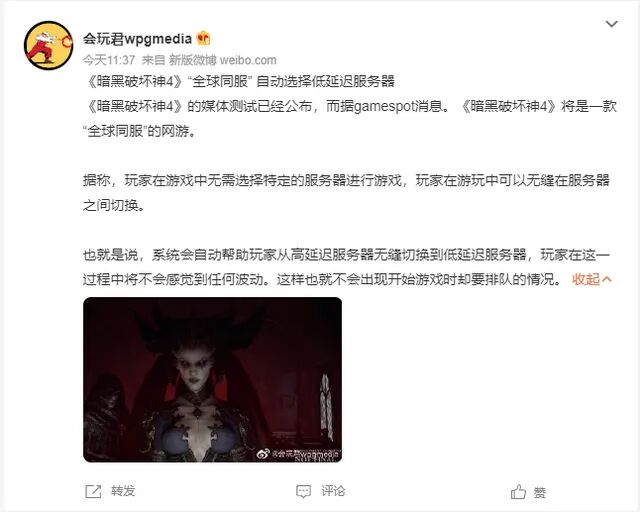 “与此同时,通过对世界体验、玩家选择和自由度当面的创新,以及一系列有趣功能的更新,团队旨在使《暗黑破坏神4》成为前作发布11年后的一次新颖和创新的回归”。