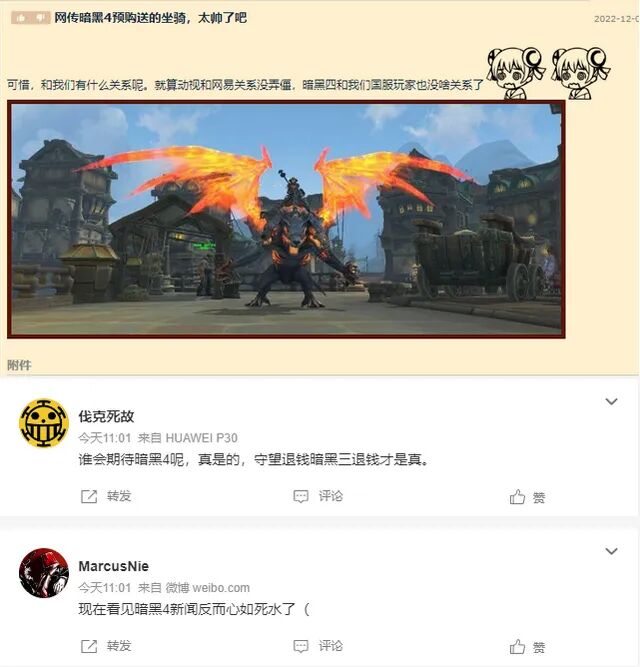 “暗黑4预购送的坐骑,太帅了吧,可惜,和我们有什么关系呢。就算动视和网易关系没弄僵,暗黑四和我们国服玩家也没啥关系了”。