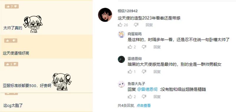 “这天使的造型2023年看着还是很带感”,“时隔多年一看,还是忍不住说一句太帅了”。