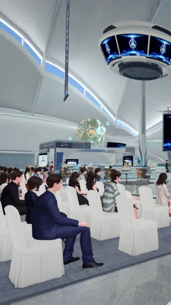 元宇宙房展看似是一个线上的展会,实则技术含量极高。从虚拟云会场、数字虚拟主持人等虚拟空间形象的搭建,再到各类3D特效、AI人工智能客服、云报道、云签约、智能同声传译等技术的应用,这些都极大幅度提升了会展的体验。参展方和观众都可以在虚拟空间中自由走动,每个参展人员都像亲临现下实体展会一样。