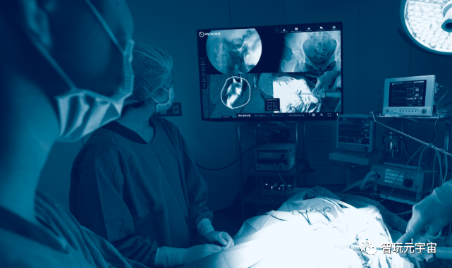 元宇宙元素可应用在临床手术的术前至术中的整个流程,通过VR/AR、全息影像等技术,解决手术病灶定位困难、医疗手术资源短缺以及医患沟通不畅等痛点。