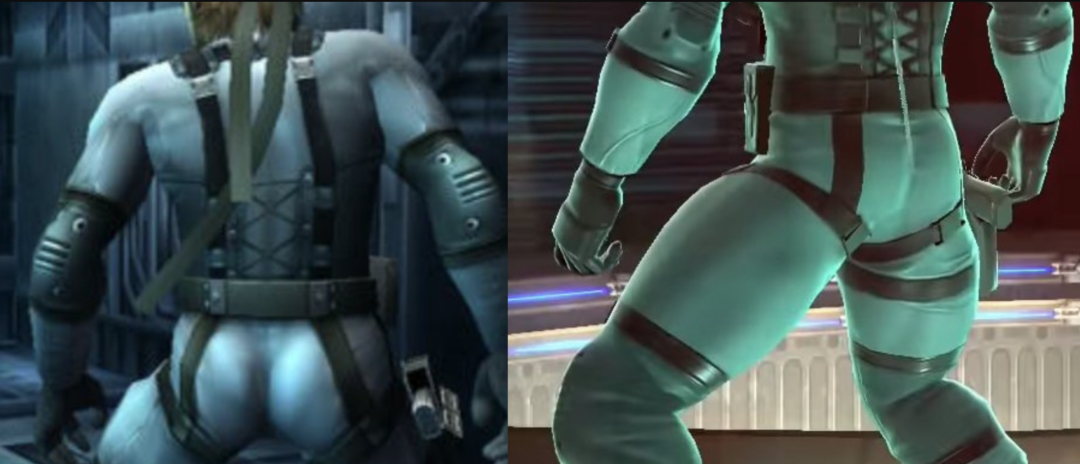 即便不是任天堂出品的角色,来到了NS平台也得收敛收敛。像是《合金装备》系列主角的斯内克,当他走进了以还原原作见长的《任天堂明星大乱斗》之后,这位翘臀型男的屁股也毫不意外的缩水了。尽管当时包括斯内克配音演员在内的大批玩家都参与了“拯救斯内克翘臀”的相关活动,但事情最后还是不了了之。