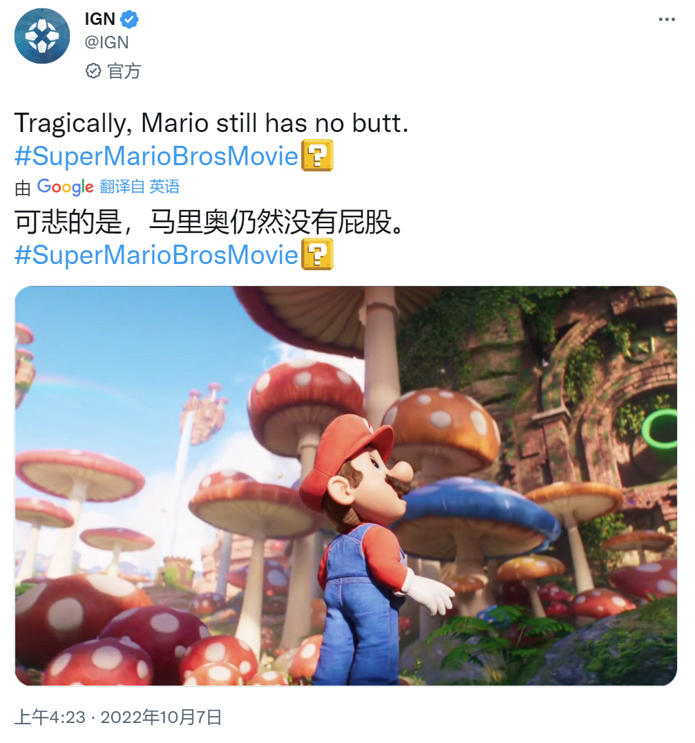 不过正如本文开头提到的那样,马力欧的粉丝们对于电影的内容好像并不是很在意。在兴奋感叹之余,大家很快便发现了这张视觉图的不对劲之处,玩家们纷纷跑到任天堂的官方渠道下面发出灵魂质问:马力欧的屁股去哪了?