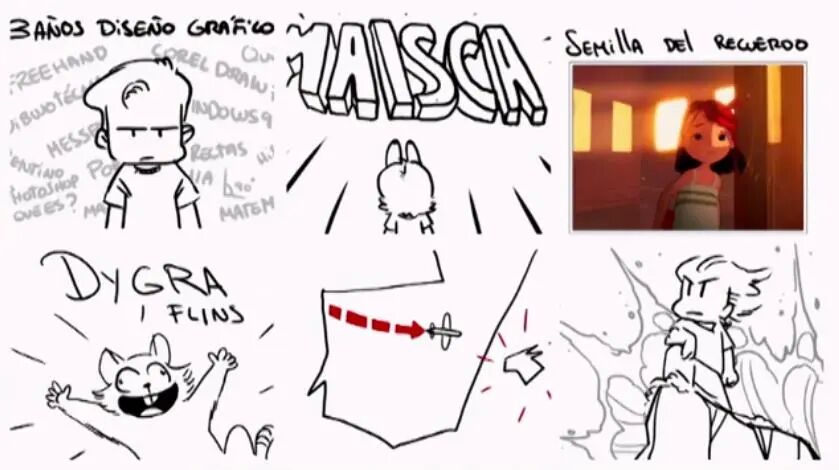 在此之前,我从来没有想过做动画师,因为当时我觉得自己没有能力做与动画相关的事情,它对我来说太难了,需要画很多东西。我和一群擅长动画的人学习,还做了一个简短的影片,去过几个动画活动,并且在西班牙和欧洲拿到过几个奖项提名。有趣的是,我还得到过西班牙奥斯卡级别的提名,但并没有胜出。