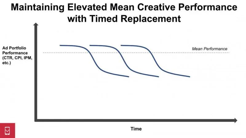 成功建立这一生产节奏的结果是,老旧的、表现退化的广告创意被改进过的替代品所取代,让投放表现能够保持稳健。这一循环的效果如下图所示。