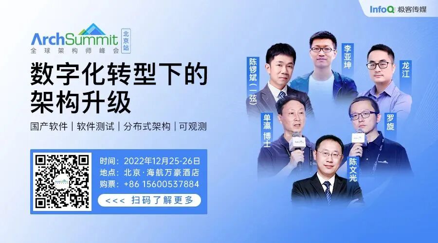 12 月 25-26 日,ArchSummit 全球架构师峰会将落地北京海航万豪酒店。来自百度、京东、华为、腾讯、斗鱼、中国信通院等企业与学术界的技术专家,将就数字化业务架构、低代码实践、国产化替代方案、分布式架构等主题展开分享讨论。