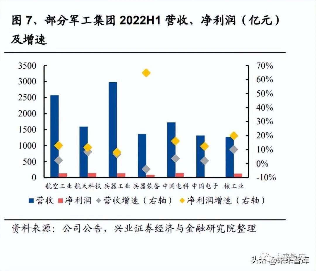 据集团 2022 年半年报,2022 年上半年兵器工业集团实现营业总收入 2981.77 亿 元,同比增长 6.76%;利润总额 158.06 亿元,同比增长 7.74%;净利润 136.30 亿 元,同比增长 8.17%。