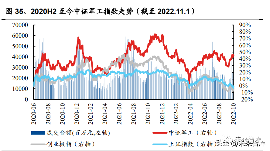2020H2 军工行业需求加速以来(2020 年 6 月 30 日至 2022 年 11 月 1 日),军工 指数涨幅 47.11%,86 家以军品业务为主的标的股价涨幅中位数为 24.75%。2020/2021/2022Q1-Q3 将近 3 年的时期内,86 家军工企业归母净利润增速中位数 累计增长 64.5%,业绩累计增速高于股价涨幅。展望 2023 年,随着军工行业需求 稳步提升,业绩持续兑现,军工板块业绩驱动的优质标的仍有上行空间。