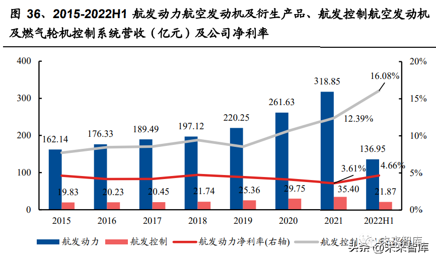 从 2022 年三季报来看,航空发动机产业链下游标的航发动力、航发控制收入稳步 增长,期间费用率大幅降低:2022Q1-Q3,航发动力实现营收 224.12 亿元,同比增长 22.18%,归母净利润 9.68 亿元,同比增长 23.67%;毛利率 11.73%,同比减少 2.71pct;期间费用率为 7.28%, 同比减少 2.57pct。2022Q1-Q3,航发控制实现营收 37.52 亿元,同比增长 23.49%,归母净利润 5.42 亿元,同比增长 36.38%;毛利率 31.35%,同比减少 1.13pct;期间费用率为 11.76%, 同比减少 3.50pct。