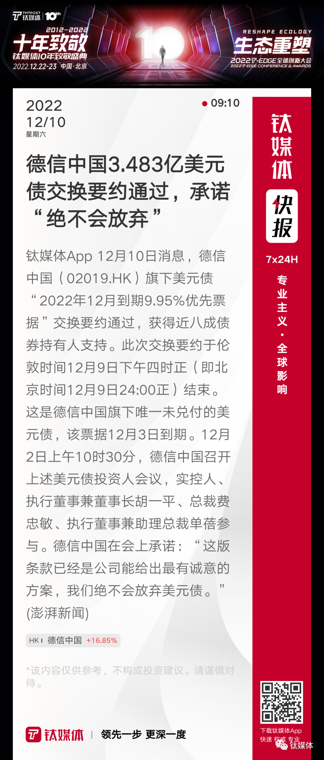【德信中国3.483亿美元债交换要约通过,承诺“绝不会放弃”】