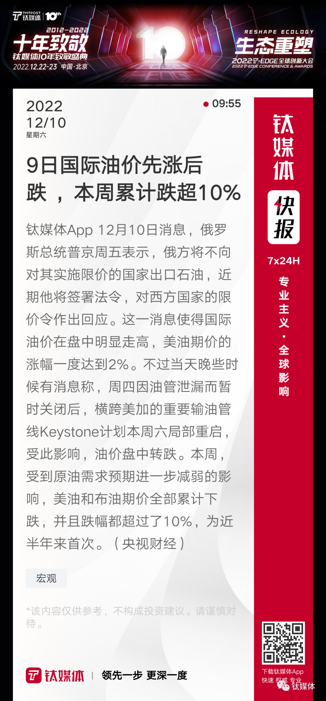【9日国际油价先涨后跌 ,本周累计跌超10%】